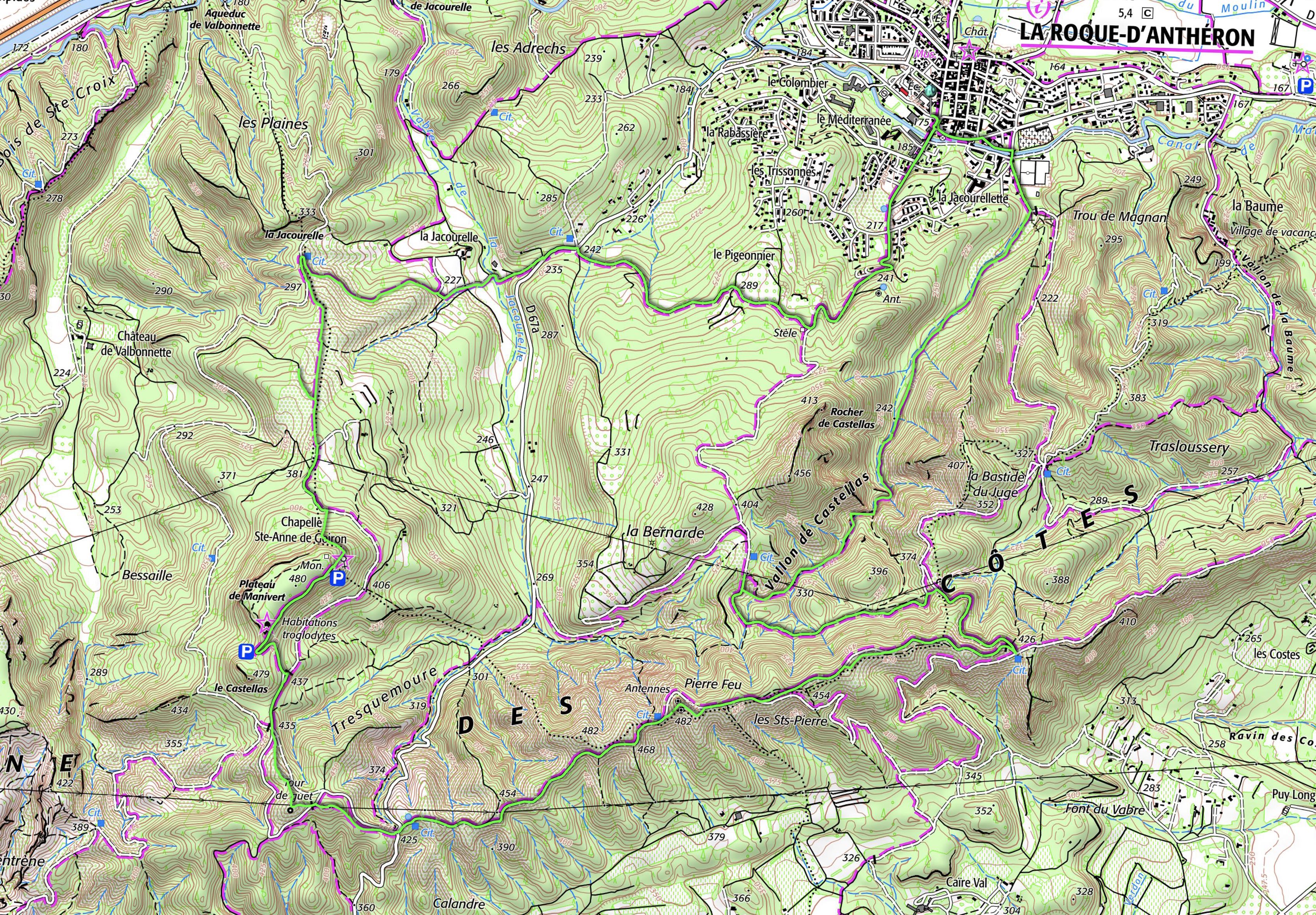 Notre randonnée hebdomadaire va, cette fois, nous amener dans le nord du département des Bouches du Rhône, où nous allons découvrir (ou re-découvrir pour certains) la chaîne des Côtes. Mais, contrairement à d'habitude, nous allons y pénétrer depuis la Roque d'Anthéron par le vallon de Castellas. Ainsi, après une bonne montée, nous cheminerons sur la crête avec un beau panorama sur la plaine de Lambesc et ses vignobles. Après un petit passage près de la tour de guet, nous arriverons à la chapelle de Sainte-Anne de Goiron et son monument où, selon l'horaire, nous pourrons profiter d'un pique-nique bien mérité. Il sera alors temps de prendre la longue descente par la Jacourelle qui nous ménera au bourg et donc aux voitures.