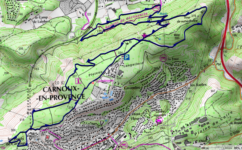 Cette manifestation propose 3 parcours de 13, 9,5 et 6,5 km empruntant des sentiers et chemins sur les communes de Carnoux et Aubagne.